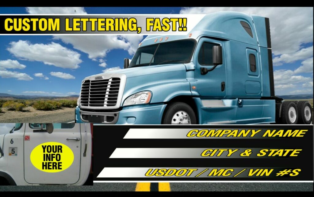 Whether it's while you wait in house design or your design provided to us! We've got all letter taken care of. Quality Fast Design & Installed. Including Company & D.O.T. Lettering.